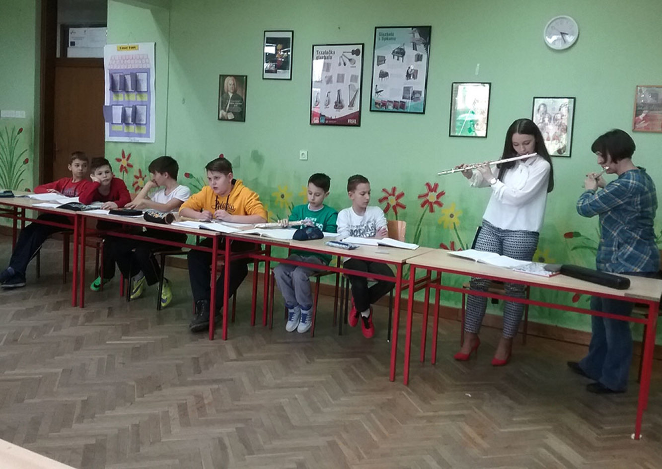 Studentica PF Matea Martinčević pomogla je u realizaciji ovih povijesnih sadržaja. Tih dana smo čitali legende o dolasku Hrvata. Profesorica Ivana Vencl i Matea glazbom su provele učenike kroz ta povijesna vremena.