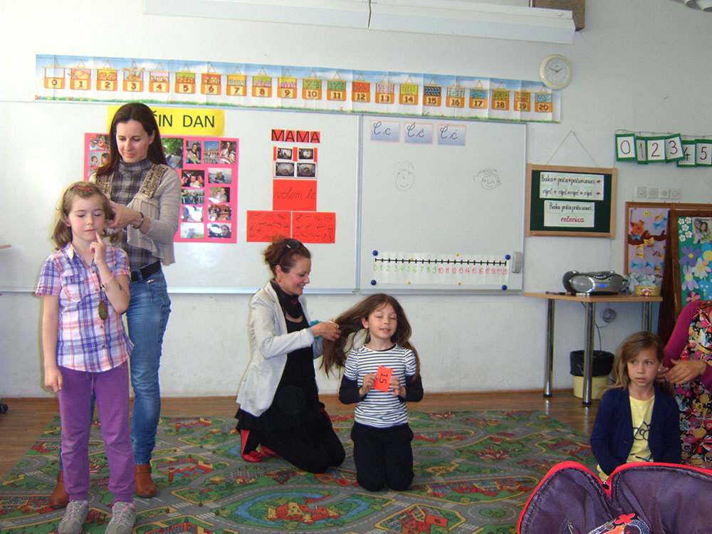 - Da bismo se malo odmorili, nastavili smo lakšim tempom – natjecanjem majki u pletenju pletenica svojim djevojčicama. Majke koje ih često pletu bile su, dakako, brže od drugih, a frizure su bile prekrasne!