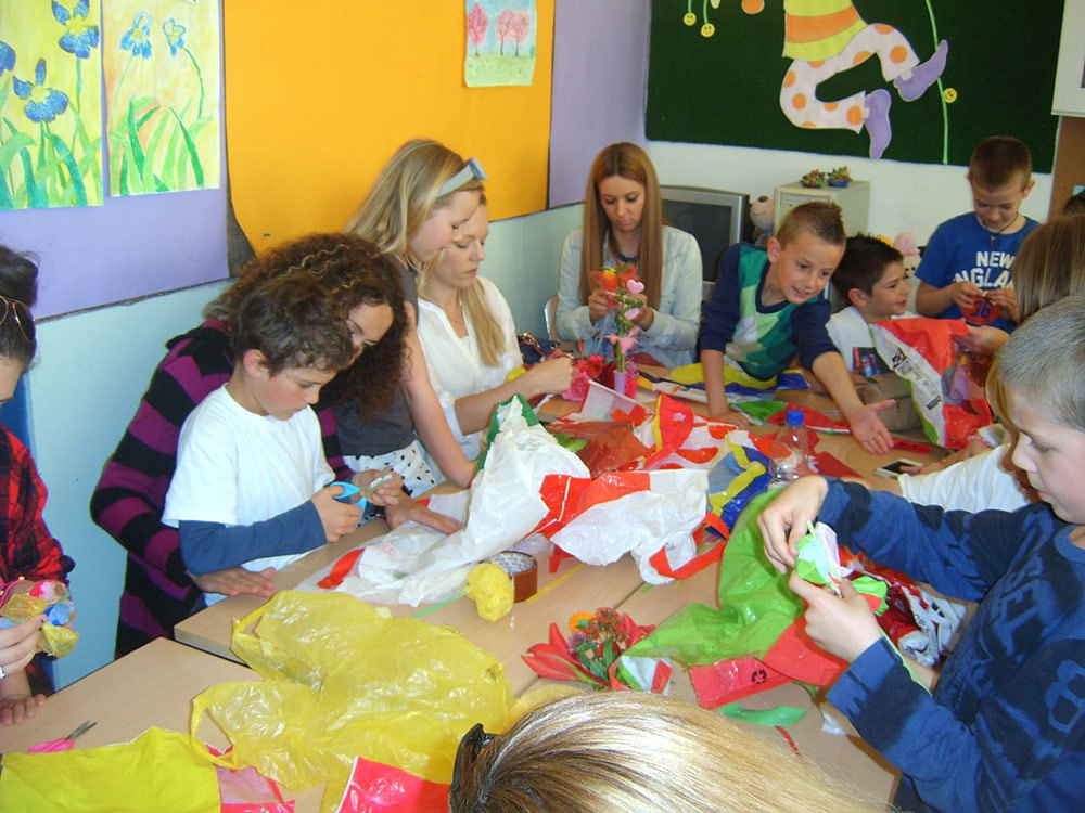 - Na kraju smo zajedno radili u skupinama. Uz vrijedne majčine ruke i spretne dječje prstiće za tren su od ostataka plastičnih vrećica nastali buketi raznobojnog cvijeća. Budući da smo ekološki osviješteni, sav smo upotrijebljeni materijal poslije odvojili u vreće za plastični otpad.