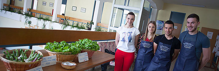 U holu Srednje škole Marka Marulića u Slatini, učenici školske zadruge Slatina, prodaju luk, salatu, a u sezoni, tu su i krastavci, paprika, rajčica…