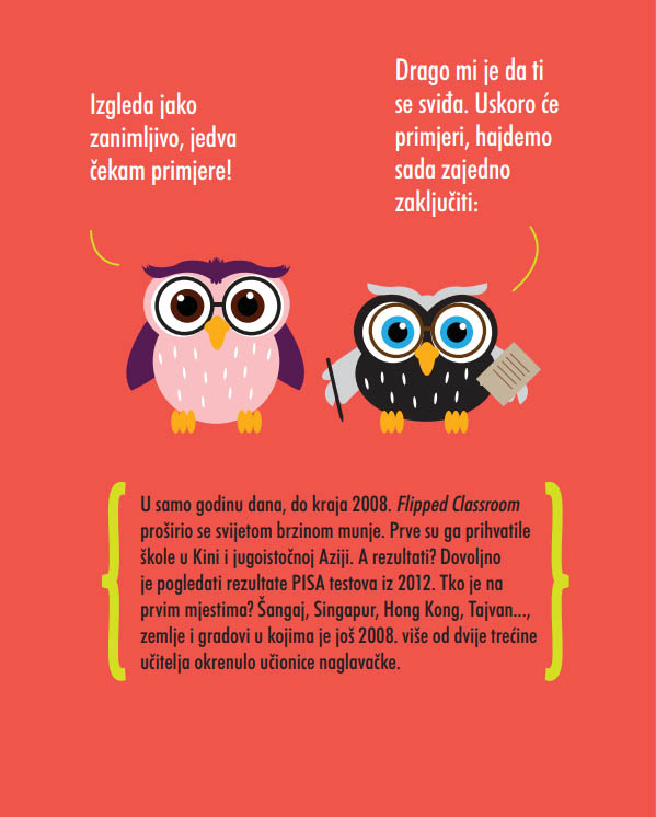 Radi se o konceptu prema kojem učitelji na školskom satu razgovaraju s učenicima umjesto da predaju. Promiče se ideja da učenici kod kuće, gledajući i slušajući videolekcije, upoznaju nastavno gradivo prije nego što će ga obrađivati u školi. Domaća se zadaća rješava u razredu s učiteljem koji tako uspostavlja aktivan i kvalitetan odnos s učenicima.