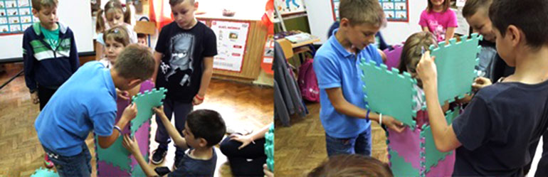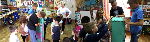 Na početku školske godine dobili smo didaktičku kutiju ŠK+5 i sve sam didaktičke materijale iskoristila u nastavi. Bili su dostupni učenicima koji su svakodnevno ostvarivali svoje kreativne ideje. Posebnu su pažnju pridavali kreativnim idejama sa strunjačama. One su u našem razredu zaokupljale pozornost svih učenika cijelu školsku godinu. Mijenjale su funkciju – od sjedećeg kutka za igru, modne piste, gradnje različitih geometrijskih tijela do razrednog dvorca, kućice za skrivanje te najdraže kreativne igre svih učenika koja je dobila i ime: Iznenađenje ili Surprise!