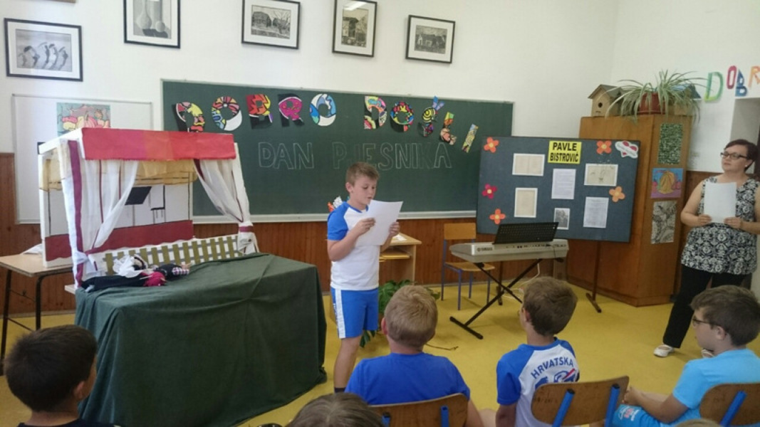 Otvarajući susret, učenici 7. razreda izveli su lutkarsku predstavu „Postolar i vrag“, a zatim je sve nazočne pozdravila ravnateljica Lareta ŽUBRINIĆ. S glazbenom točkom nastupile su učenice Leona KORDI i Ivona KOJIĆ, a učiteljica Božica FILIPOVIĆ VEG predstavila je rad lokalne pjesnikinje Tanje FULJEK te pročitala dva njezina rada.
