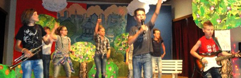 Tema mjuzikla je ljubav, glazba i prijateljstvo, a učenici su uspješno pjesmom, plesom i glumom prenijeli priču i osvojili publiku. Ranije su u studiju snimali pjesme iz mjuzikla na CD, koji je te večeri promoviran. Ponosan je bio i ravnatelj škole Ivan Jaković koji je pohvalio mentore i učenike te im zahvalio na promociji škole i mjesta. Potom su dva dana kasnije pred mnoštvom roditelja i mještana održali Završnu školsku priredbu koju su pripremili učenici i učitelji. Prikupljali su se i dobrovoljni prilozi za obnovu vukovarskog vodotornja. Zanimljiva, šarolika i uspješno izvedena priredba bila je presjek rada učenika i mentora na izvannastavnim aktivnostima kroz cijelu školsku godinu. [ IZ DRUGIH IZVORA | epodravina.hr ]