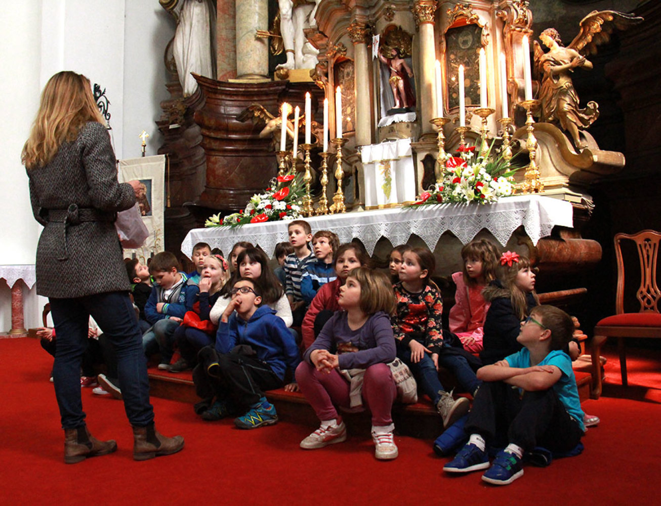 Počevši s tim mislima minule školske godine u Katoličkoj osnovnoj školi koja po prvi put i započela s radom u Virovitici, krenuli smo s projektom „Sveci naše crkve sv. Roka“. Župnu crkvu krasi bogatstvo baroknog interijera s pripadajućim kipovima svetaca kojih uistinu ima znatan broj. Župna je crkva posvećena sv. Roku zaštitniku od kuge. Za vrijeme turske okupacije u ovim našim krajevima je vladala kuga pa su se Virovitičani zavjetovali da će sagraditi veliku crkvu koja će biti zidana i posvećena sv. Roku. Unutrašnjost crkve pravi je biser franjevačkog baroka u ovom dijelu Hrvatske. Crkvu krasi glavni oltar s osam pokrajnjih oltara, propovjedaonica, faldistorij i sakristija.