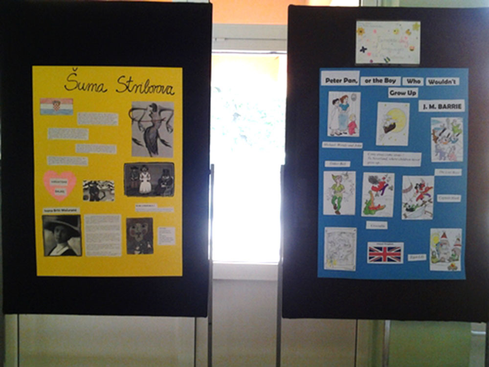 Iz područja materinjeg jezika predstavili su Šumu Striborovu Ivane Brlić Mažuranić, s engleskog govornog područja Petra Pana, iz njemačkog najpoznatije skupljače bajki i priča braću Grimm i njihovu Crvenkapicu te Pinokija kao predstavnika talijanske dječje književnosti. [ Izvor: os-ljbabic-jastrebarsko.skole.hr ]