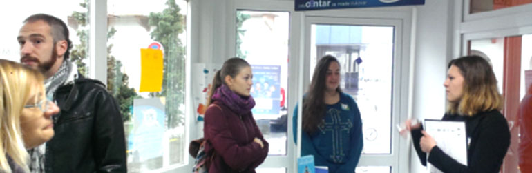 Putujuću informiraonicu obogatila su tri EVS-volontera Mirovne grupe mladih Dunav, od kojih su dva iz Španjolske, a jedan iz Francuske. S mladima su podijelili svoje iskustvo u EVS-u te što ih motivira na volontiranje u Vukovaru.