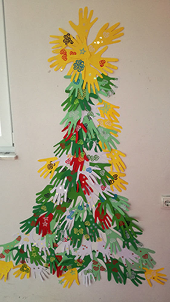 Osim što se zajedno igraju, djeca i stvaraju. Tako su zajedničkim snagama napravili neobično božićno drvce od obrisa svojih ruku.