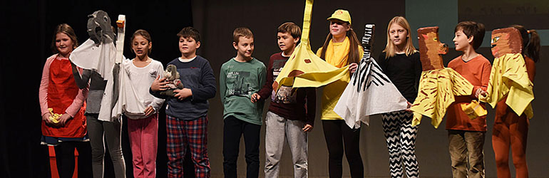 ... odijevaju Crvenkapičinu haljinu, lovčev šešir dječaci stavljaju na glavu…