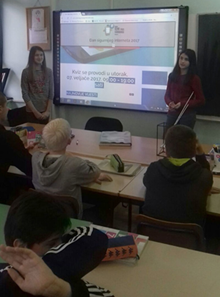 Tom se projektu svake godine pridružuje sve više naših škola koje raznim aktivnostima upozoravaju učenike na opasnosti interneta. U našoj su školi Dan sigurnijeg interneta obilježili učitelji informatike Marko Brijačak i Tomislav Bošnjak te pedagoginja Ana Metić. Tijekom nastave informatike učenici predmetne nastave održavali su prigodna izlaganja, sudjelovali u kvizu te na razne načine učili o opasnostima interneta. Vijeće učenika je također bilo posvećeno sigurnom internetu, o kojem je članove educirao učenik 7. razreda Luka Ivanac, dok je pedagoginja učenicima 4. razreda održala radionice, a tema su bile virtualne igrice.