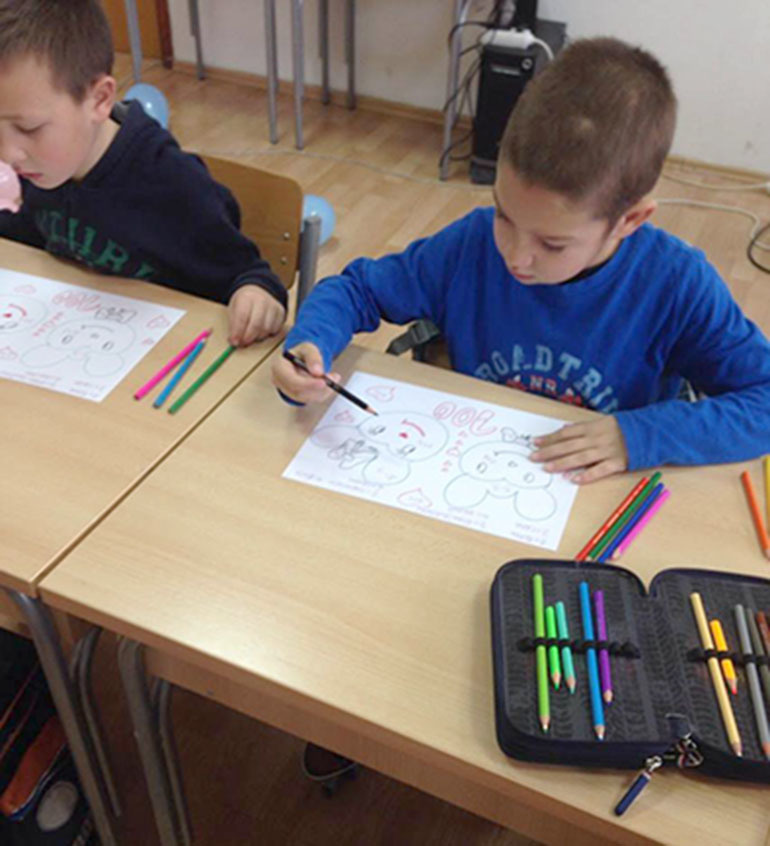 Prvi razred je dobio personalizirani nastavni listić iz hrvatskog jezika i matematike. Za matematiku bojanku koju je ručno izradila učiteljica, pa smo na satu hrvatskog jezika čitali pjesmicu koju je osmislila i napisala učiteljica "STO-noga". Učenici su dobili listić s pitanjima vezanima uz pjesmu. Učenica 2. razreda je bolesna pa nije sudjelovala u našim aktivnostima, no pripremili smo joj poruku i balon da je razveselimo. To joj je odnio njezin brat koji ide u prvi razred.