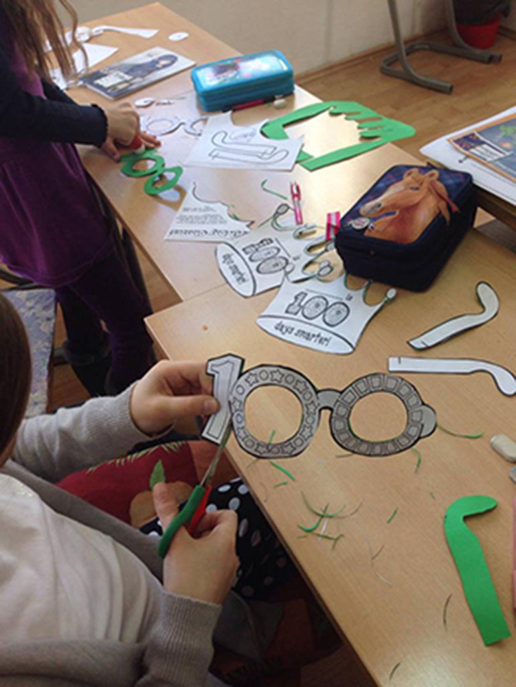 Učenice 3. razreda dobile su personalizirani nastavni listić sa zadacima dijeljenja višekratnika broja 100 brojem 100. Potom su smišljale računske priče zbrajanja i oduzimanja višekratnika broja 100. Na satu hrvatskog jezika pisale su riječi koje sadrže riječ STO u nazivu, ali glagoljicom, a onda i priču "Da sam na 100 dana čarobna vila, učinila bih...".