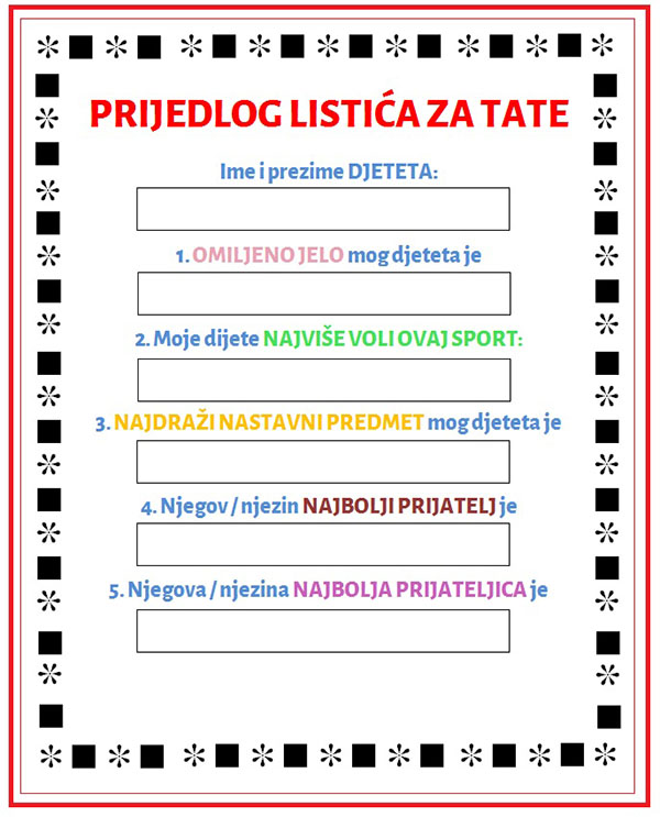 Očevi samostalno odgovaraju na pitanja na listiću za tate.