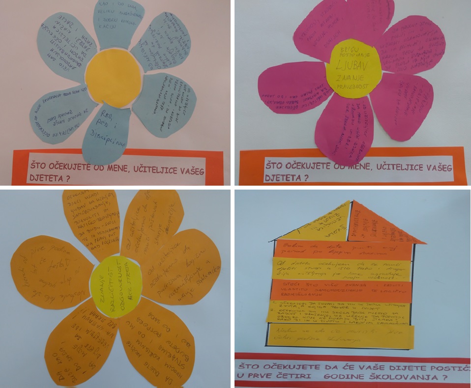 Da bi odgovorili na pitanje što očekuju od učiteljice svojega djeteta, roditelji su trebali otvoriti drugu kuvertu u kojoj su bile cvjetne latice. Na njih su pisali svoje odgovore. Na kraju su latice složili u cvijet koji simbolizira naše zajedništvo, suradnju i napredak.