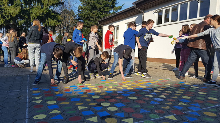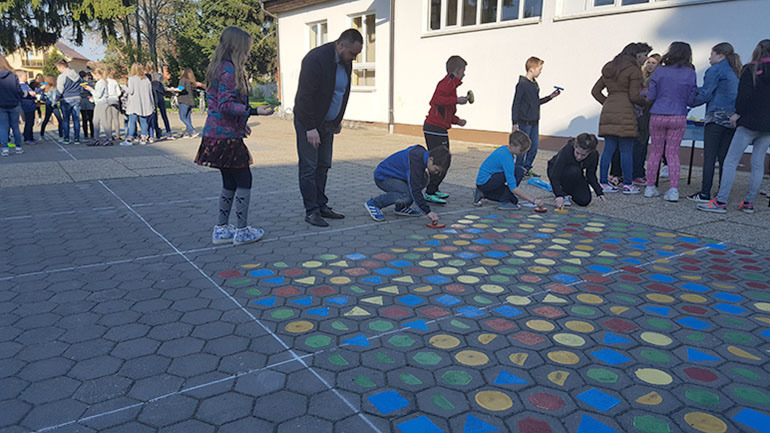 No, osobitost ovog petka bilo je uređenje prilaza školi i ukrašavanje školskog trga vlastitim rukama u kojem je sudjelovalo svih 770 učenika. Svi su učenici dobili priliku posaditi sadnicu živice uz prilaz školi te sudjelovati u bojenju školskog trga. Pri sadnji živice učenicima su pomagali školski eko-koordinatori, učiteljica Petra Kanešić i učitelj Tomislav Rogulja. U bojenju su na prijedlog učitelja likovne kulture Ivana Duića koristili geometrijske likove u različitim bojama.