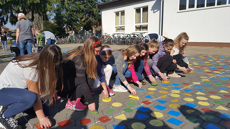 Svrha ovog projekta bila je dvostruka: povećati sigurnost učenika pri dolasku i odlasku iz škole te uljepšati bivše parkiralište zaposlenika škole koje će učenicima služiti kao školski trg. Tako će učenici nakon završetka proljetnih praznika tijekom odmora izlaziti iz škole i boraviti na svježem zraku, gdje će se moći družiti, šetati, baviti sportskim aktivnostima. Za potrebe školskog trga učenici članovi učeničke zadruge s učiteljem Dariom Mijačem na čelu osmislili su i pripremili klupe i stolove od starih paleta. U budućnosti će se taj prostor koristiti i za nastavu na otvorenom.