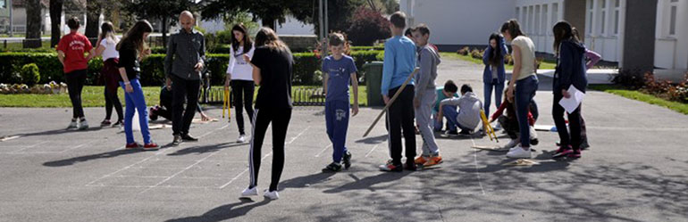 Prema riječima ravnateljice škole Kristine Krmpotić, to je jedna od aktivnosti u projektu iz matematike za školsku godinu 2016./2017. Učenici 7. razreda i učitelj Siniša Milosavljević izradili su polje za društvenu igru “Čovječe, ne ljuti se”. Polje je nacrtano u dvorištu škole, a dovoljno je veliko da uobičajene figure zamjenjuju sami učenici. Pri izradi učenici su upotrijebili znanja i vještine stečene na nastavi matematike, a veliku ulogu je imalo i njihovo životno iskustvo s tom igrom. Svrha je primjena stečenog znanja, ali i učenje uz igru te jačanje timskog rada i osjećaja pripadnosti. [ IZ DRUGIH MEDIJA | icv.hr ]