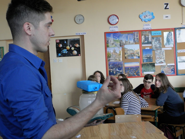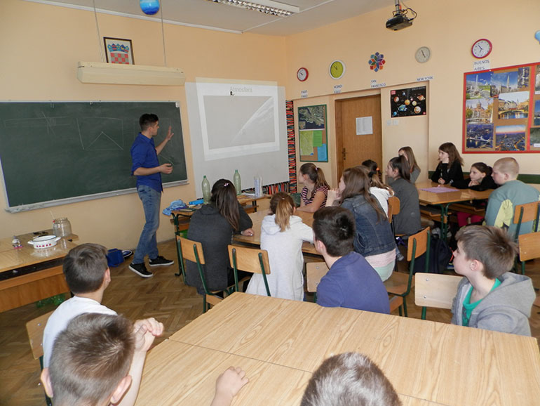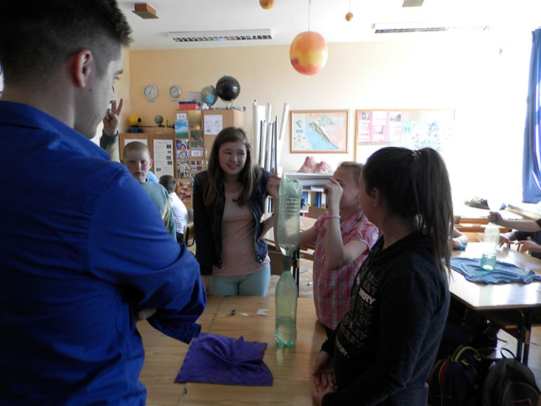 Zajedno su održali meteorološku radionicu za 3. i 4., 5. i 6., te za 7. i 8. razred. Radionice su bile vrlo poučne, popraćene vrlo zabavnim pokusima, pa je to bio u tjednu u kojem traje Festival znanosti naš mali, školski festival znanosti. Radionice su održane tijekom tri školska sata, bez trenutaka praznoga hoda, jer su nam naši gosti priredili puno zanimljivih sadržaja, od toga kako stvoriti maglu, i kako je rastjerati, kako napraviti alkoholni termometar, do toga kako nastaju oblaci i kakvi sve mogu biti. Na kraju susreta dobili smo uvid u svijet meteorologije, ali i u to kako izgleda jedan dan Nikole Vikića Topića na televiziji. Uz to što smo puno naučili, dobro smo se i zabavili.
