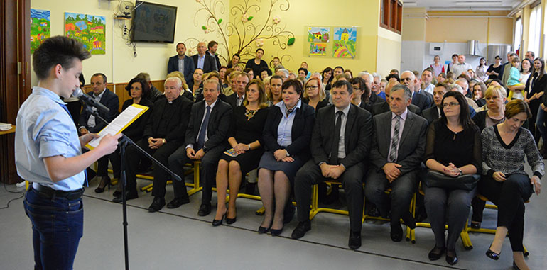 To je ujedno bila prilika za otvorenje novouređenih prostorija za računovodstvo, tajništvo i sanitarni čvor. U govoru dobrodošlice mnogobrojnim uvaženim gostima obratila se ravnateljica škole Brigitte Gmaz. Opisala je tijek dogradnje i opremanja školske zgrade te plan daljnje dogradnje. Izrazila je veliko zadovoljstvo radi preimenovanja škole.