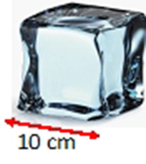Kocka leda ima brid dug 10 cm. Koliki je obujam te kocke?