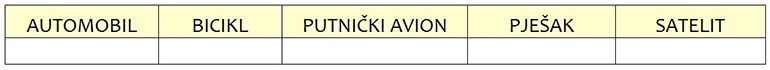U prazne prostore u tablici umetnite odgovarajuće brzine: