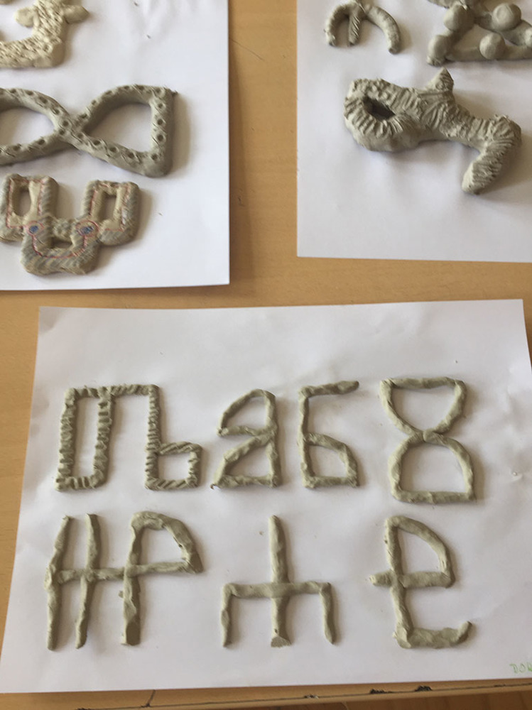 Nakon uvodnog dijela mali eugenijalci su pokazali svoje kreativne vještine. Oblikovali su glagoljska slova pomoću plastelina, glinamola ili su nacrtali odabrano slovo pomoću svoje omiljene likovne tehnike... Ograničenja nije bilo.