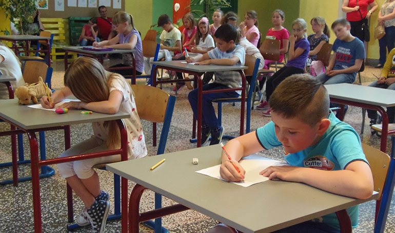 S tom namjerom prvi put u našoj školi organizirali smo smotru lijepog pisanja „Glas, slovo, slovopis – to je moj rukopis“. Na smotri je sudjelovalo 47 učenika od 1. do 4. razreda. Svi učenici koji su sudjelovali pokazali su iznimnu hrabrost i vještinu lijepog pisanja. Dobili su zahvalnice i simbolične poklone – olovke. Prosudbeno povjerenstvo nije imalo lak posao. Teško je bilo odlučiti čiji rukopis će dobiti bilježnicu, knjigu, notes…