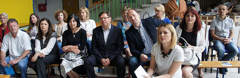 Defektologinja Ljiljana Fresl u ime škole domaćina pozdravila je sve prisutne i zahvalila im na dobro odrađenom poslu, nakon čega su o projektu i iskustvima u radu s djecom govorili u ime Grada Samobora Marija Galic Kotarski, voditeljica i koordinatorica cijelog projekta, te Igor Kupres, jedan od 6 pomoćnika u nastavi u školi u Bregani.