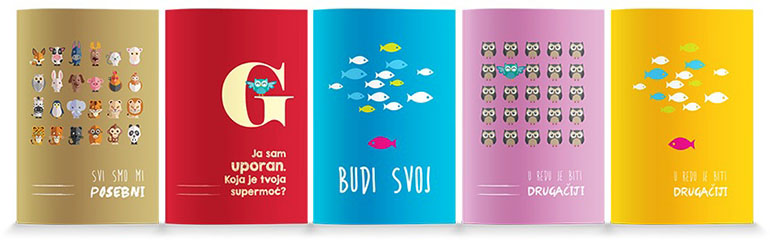 Bilježnice su šarene i vesele, a na koricama nose pozitivne poruke o jednakosti i pravu na različitost.