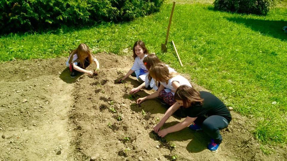 Vrt smo obradili ujesen na površini iza škole, gdje je nekada bio. Do proljeća skupljali smo sjemenje raznih povrtnih kultura. U rano proljeće zasijali smo ih u male teglice i brinuli se o njima do sadnje u vrt.