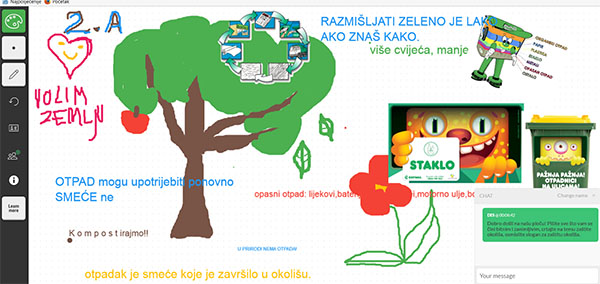 Učenicima je ponuđena poveznica na AWW aplikaciju – A Web Whiteboard, odnosno na interaktivnu ploču na kojoj svi učenici za nastavnog sata mogu sa svoga osobnog računala pisati sve što je bitno, novo, zanimljivo, sve što su naučili, pročitali ili čega su se dosjetili. Mogu i crtati ili uploadati fotografije vezane za nastavnu temu.