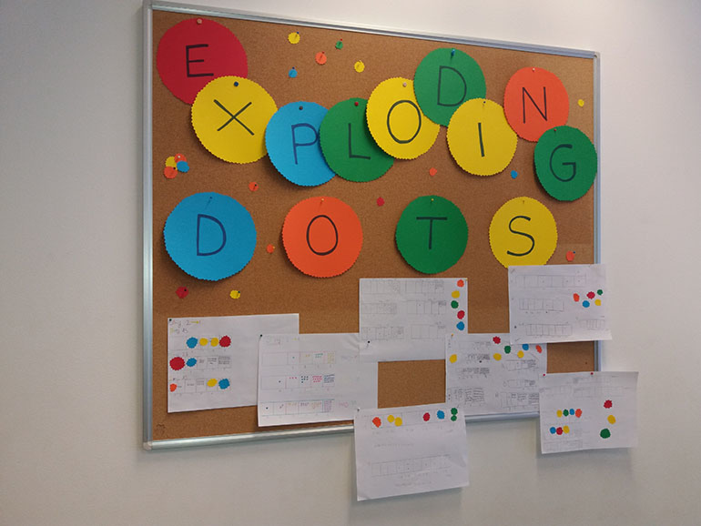 Prvi susret učenika s Exploding dots bilo je predavanje na kojem su se upoznali s točkicama koje eksplodiraju. Na predavanju su učenici dobili poveznicu na koju su se prijavili i vježbali, te se na taj način pripremili za nadolazeću radionicu.