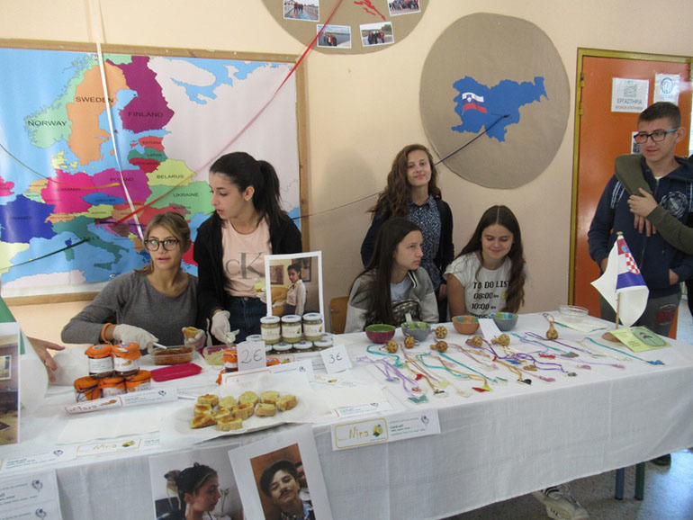 U školskom dijelu našeg boravka učenici, sudionici projekta iz Italije, Slovenije, Poljske i Hrvatske prisustvovali su nastavi sa svojim domaćinima, predstavili su rad svojih minikompanija i zadruga na školskom „bazaru“, sudjelovali u radovima u školskom vrtu, predstavili snimljene reklame o svojim proizvodima i prezentacije o načinu i elementima uspješnog reklamiranja.