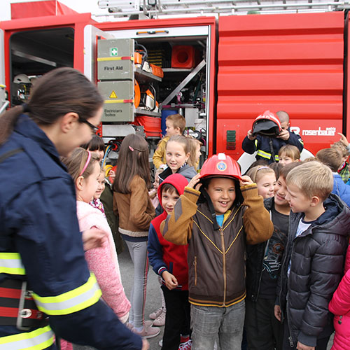 Na školskom igralištu vatrogasci su učenicima pokazali vatrogasno vozilo i opremu koja se upotrebljava u gašenju požara, ali i tehničkim intervencijama, primjerica u prometnim nesrećama i drugim opasnim situacijama. Učenici su dobili prigodne bojanke i crtančice s pomoću kojih će utvrditi stečena znanja s predavanja.