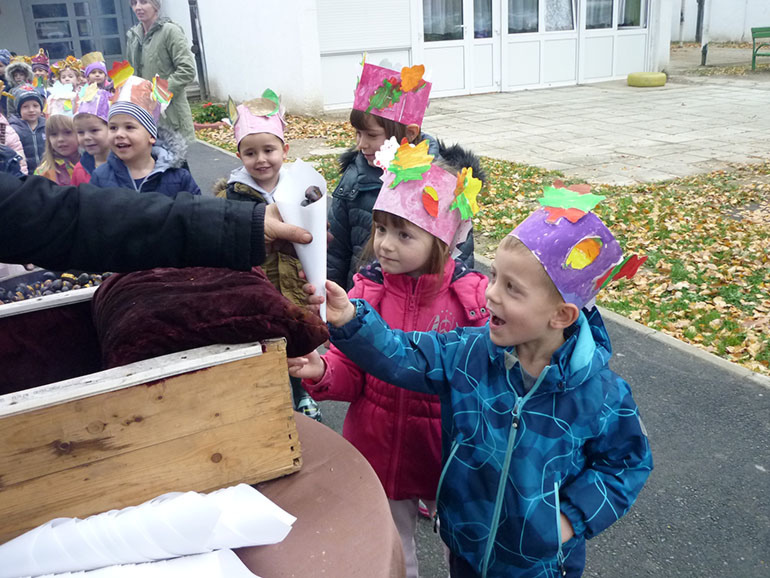 Pa nema boljeg načina da se zaposle sva dječja osjetila, a naposljetku i ono u ustima. Dok su ih sitnim zubićima žvakali, pazeći da pri tome ne opeku jezik, nisu mogli skriti oduševljenje. Čak i ona djeca koja su govorila da ne vole kestene, nisu mogla odoljeti a da ih ne kušaju.