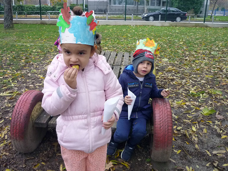 Sada već godinu dana stariji, pametniji, strpljiviji... dočekali su svaki svoju mjericu kestena. A u tom slatkom zamotuljku, leži pravo bogatstvo za sva njihova osjetila. Vrući, mirisni, mekani, tvrđi kesteni... a trebalo ih je sve i oljuštiti...
