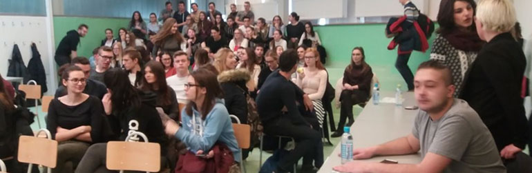 … koji su iz prve ruke, od sadašnjih studenata, mogli doznati sve informacije o željenom studiju. Na manifestaciji je sudjelovalo desetak studenata različitih fakulteta koji su spremno odgovarali na pitanja maturanata. Osim studenata, sudjelovali su i Studentski zbor Fakulteta organizacije i informatike i Studentski zbor Sveučilišta sjever. Maturantima se obratio i voditelj studentskog servisa iz Koprivnice, koji je savjetovao buduće studente o svim mogućnostima rada i bespovratnih naknada za studente. Jedna gimnazijska učionica bila je prepuna zainteresiranih maturanata koji su postavljali pitanja i informirali se o željenim fakultetima. Događaj je otvorio ravnatelj Gimnazije Vjekoslav Robotić, a nazočilo je 130 učenika. [ IZ DRUGIH IZVORA | koprivnica.hr ]