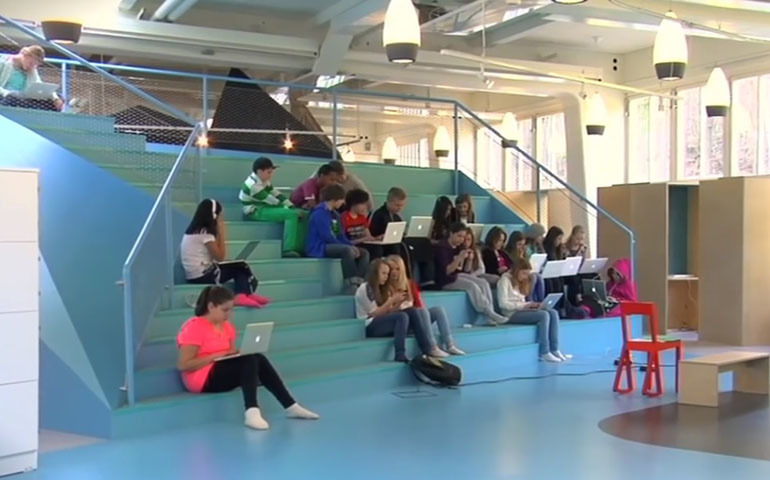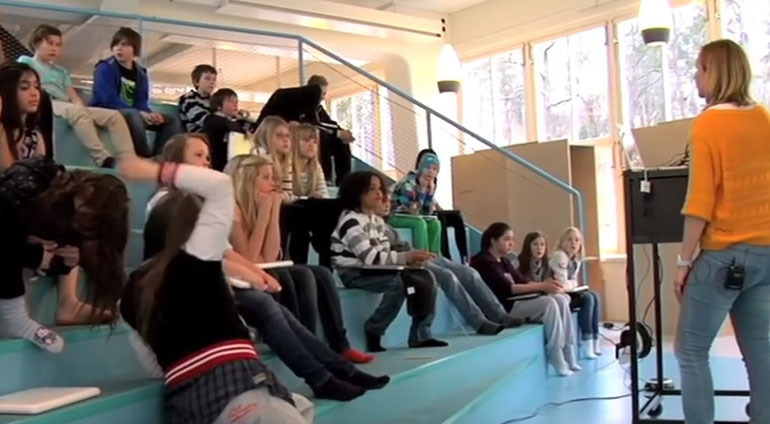Privatna tvrtka Vittra, koja posjeduje školu, želi da se proces učenja odvija u svim kutovima zgrade, pa je umjesto zidova koji odvajaju učionice kreiran otvoreni prostor s različitim zonama.