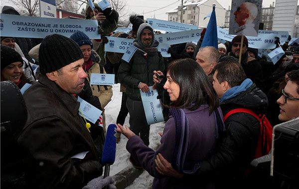 Podsjetila je da je Vlada na današnjoj sjednici donijela odluku o produženju materijalnih prava za sve učitelje osnovnih i srednjih škola i pozvala sudionike skupa da uđu u zgradu Ministarstva, čime će "pokazati i učenicima i studentima da su spremni na zajednički dijalog".