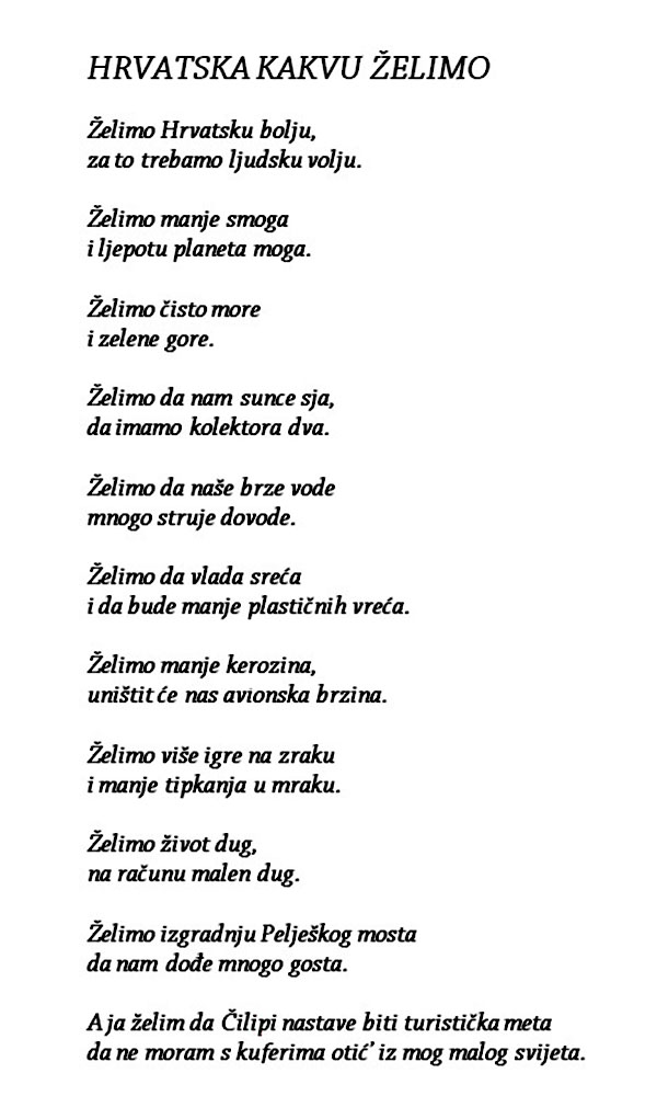 Natječaj za učeničke literarne i likovne radove o temi „Hrvatska kakvu želimo” provodi se u sklopu procesa izrade Nacionalne razvojne strategije Republike Hrvatske do 2030. godine. Aktivnosti na terenu provode regionalni koordinatori, a u Dubrovačko-neretvanskoj županiji koordinira ih Regionalna razvojna agencija DUNEA. [ IZ DRUGIH IZVORA | opcinakonavle.hr ]