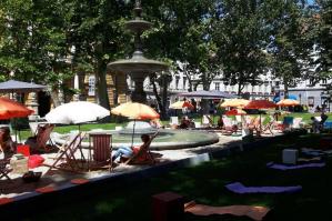 Središte Zagreba - jedan od najljepših zagrebačkih parkova, Zrinjevac – pretvoren je u plažu, a ležaljke i suncobrani te široki…