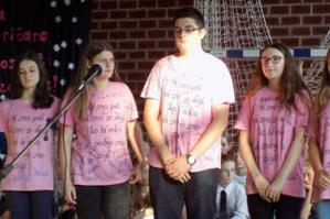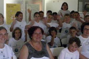 …u pratnji svoje učiteljice Jožice Žurge, knjižničarke Vanje Adamlje i zamjenika ravnatelja Tomaža Rozine. Križevački učenici su tijekom godine surađivali…