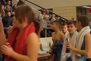 U kontrolu im je stigao Djed Božićnjak koji je publiku razveselio slatkišima i bombonima, a male plivače splitskog Plivačkog kluba…