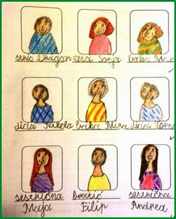unuk/unuka, bratić/sestrična i tu međusobnu rodbinsku povezanost. Za to nam je poslužilo simbolično prikazivanje obitelji i njihova povezanost s učenikovom obitelji.