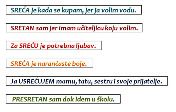 Pišući provjeru iz ove nastavne teme, mogu vas izvijestiti da je uspjeh čak 35 posto bolji nego u klasičnom obliku obrade ostalih nastavnih tema. Učenička zapažanja su čak i bolja, pregledavajući uvezani projekt naišla sam i na rečenice o sreći.