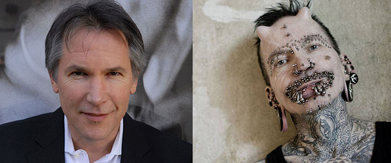 Zgodan je i primjer Nijemca Rolfa Buchholza, nekad omiljenog srednjoškolskog učitelja informatike koji je morao dati otkaz u školi kad je on sam postao poruka zbog koje su učenici postali gluhi za ono što je govorio. Na slici je Buchholz prije nego što je u četrdesetima otkrio stras prema tetoviranju i piercingu ... i danas.