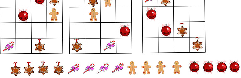 Moja verzija igre malo je jednostavnija jer nema brojeve, nego ukupno šest različitih božićnih motiva, što znatno olakšava igru (u prilogu imate i jednostavniju verziju s četiri motiva).