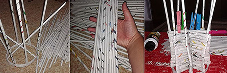 - Slamku napravim tako što jedan list novinskog papira srolam po dijagonali na tanku okruglu olovku te kraj zalijepim ljepilom za papir.