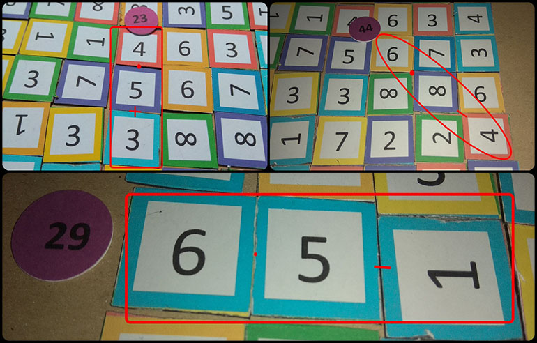Igra se sastoji od 49 PLOČICA KVADRATNOGA OBLIKA na kojima su brojke od 1 do 9.