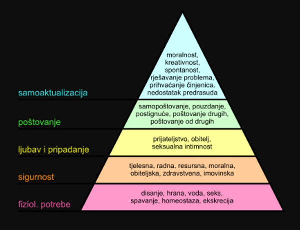 Dugotrajnim je istraživanjem Abraham Maslow, humanistički psiholog, uspio navesti i objasniti najvažnije ljudske potrebe za koje je smatrao da su urođene svakom čovjeku te da usmjeravaju sva njegova ponašanja kako bi se ostvarile.